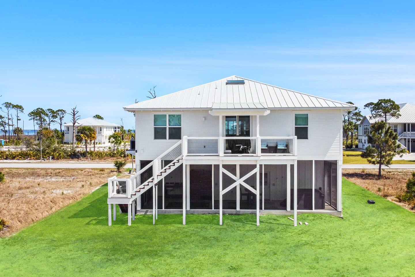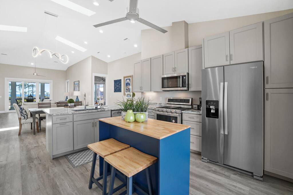 Welcome to VitaminSea Villa, your relaxing retreat on the peaceful shores of Cape San Blas. Our beach home is thoughtfully furnished for comfort, simplicity, and coastal vibes. This space includes: * 4 Bedroms (3 king and 1 bunk room w-2 bunk beds) * 4.5 Baths (all ensuite, half bath on garage level) * Fully equipped kitchen with everything you need to cook at home * Open-concept living/dining area perfect for relaxing and spending time together * Outdoor deck and screened-in porch with ample seating * Washer & dryer for guest use * High-speed WiFi, smart TV You'll be a short walk or drive to the beach (golf cart available for rent). The location is close to everything Cape San Blas has to offer including TH Stone Park, walking trails, and local shops and restaurants.