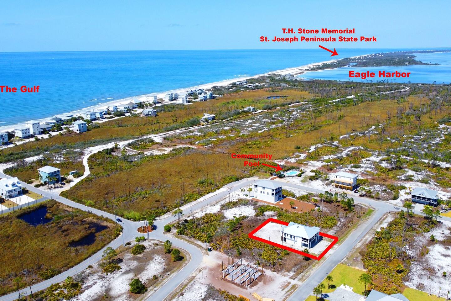 Gorgeous newer home, tucked away in gated community at North Cape near Secluded Dunes- newest and best kept secret on Cape San Blas - peaceful, uncrowded, pristine, white sand, dog friendly beach Access to golf cart. Dedicated beach access, open floor plan, spacious rooms, en-suite baths, two balconies, game room, jacuzzi. Fishing, kayaking, paddleboarding, horseback riding activities in area. Enquire about nearby boat and trailer storage. Minutes to TH Stone Memorial State Park.